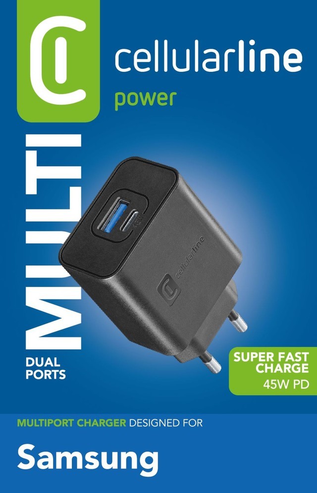 Cellularline Verkkovirtalaturi Dual 45W USB-C & USB Samsung
